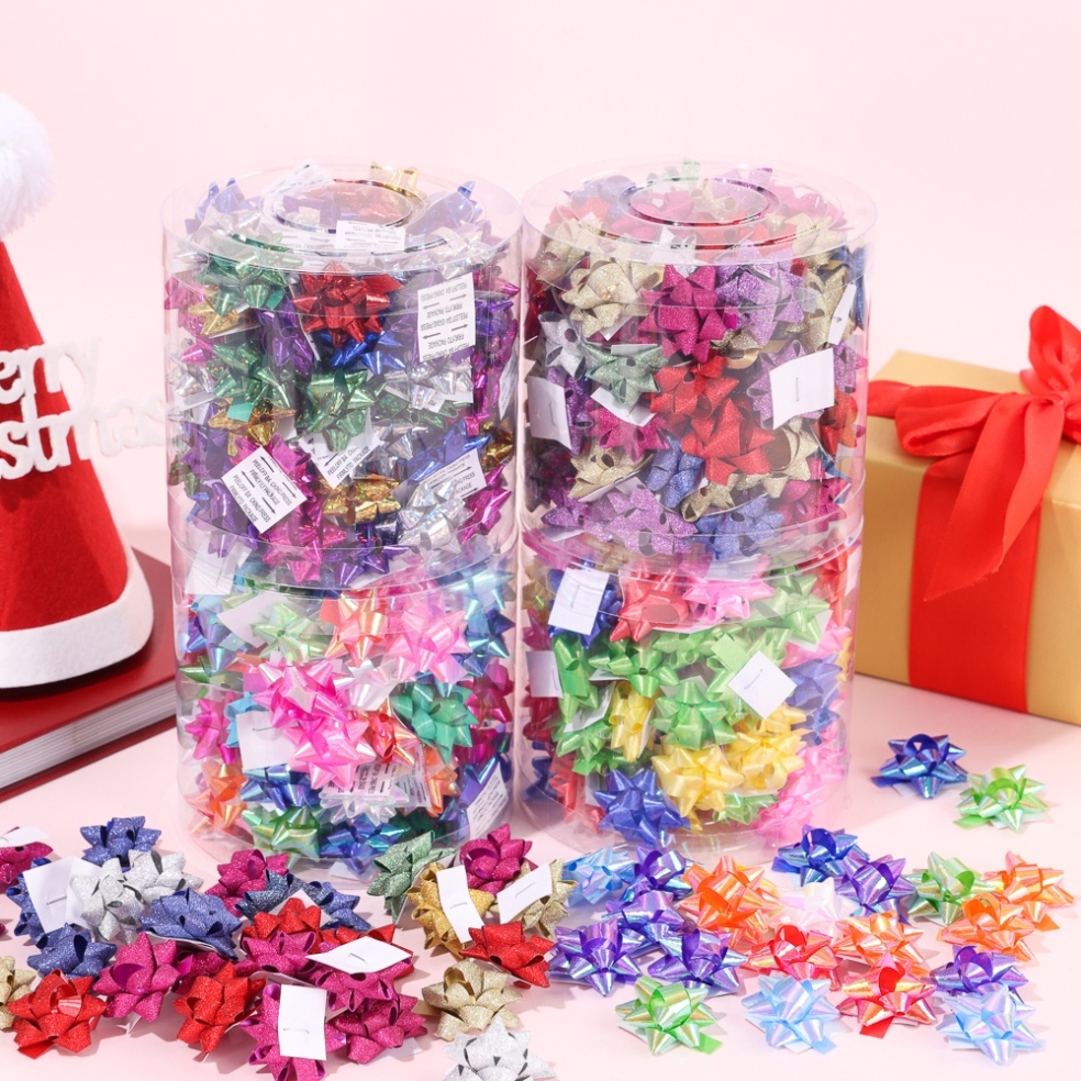 Our 1 inch mini gift bows are made from high-quality PP plastic and designed for bulk gift packaging and retail use. With a compact size and uniform appearance, they are ideal for supermarket gift sets, retail packaging, and promotional programs.