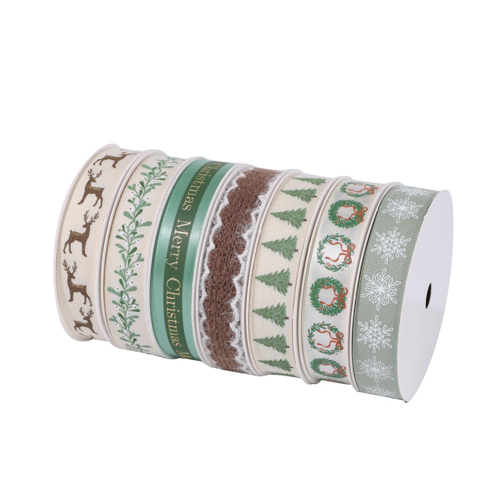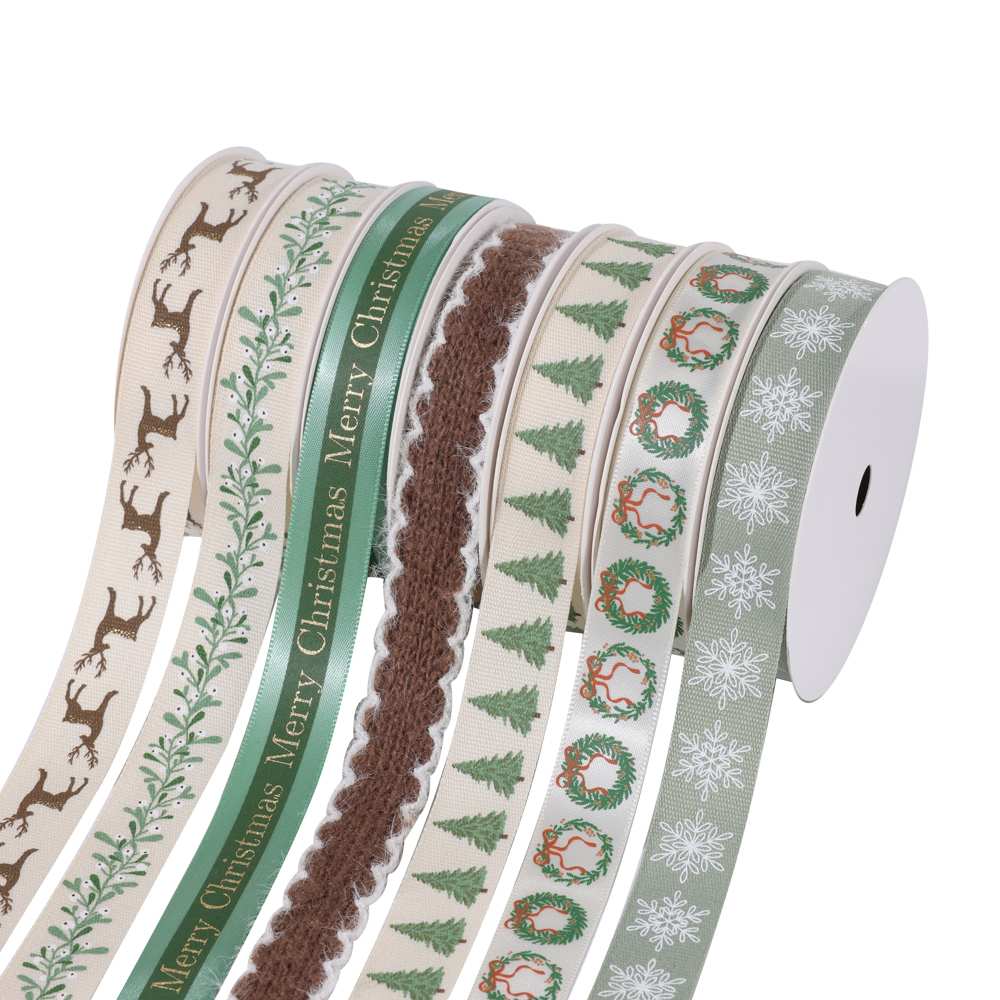 Standard sizes such as 16mm polyester satin ribbon are available to meet supermarket and wholesale requirements. Custom Christmas designs, colors, and private label packaging can be provided for OEM projects.