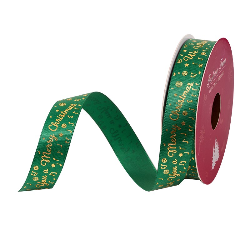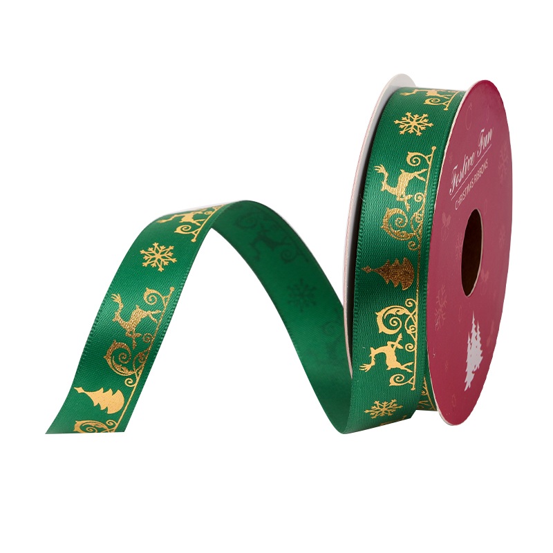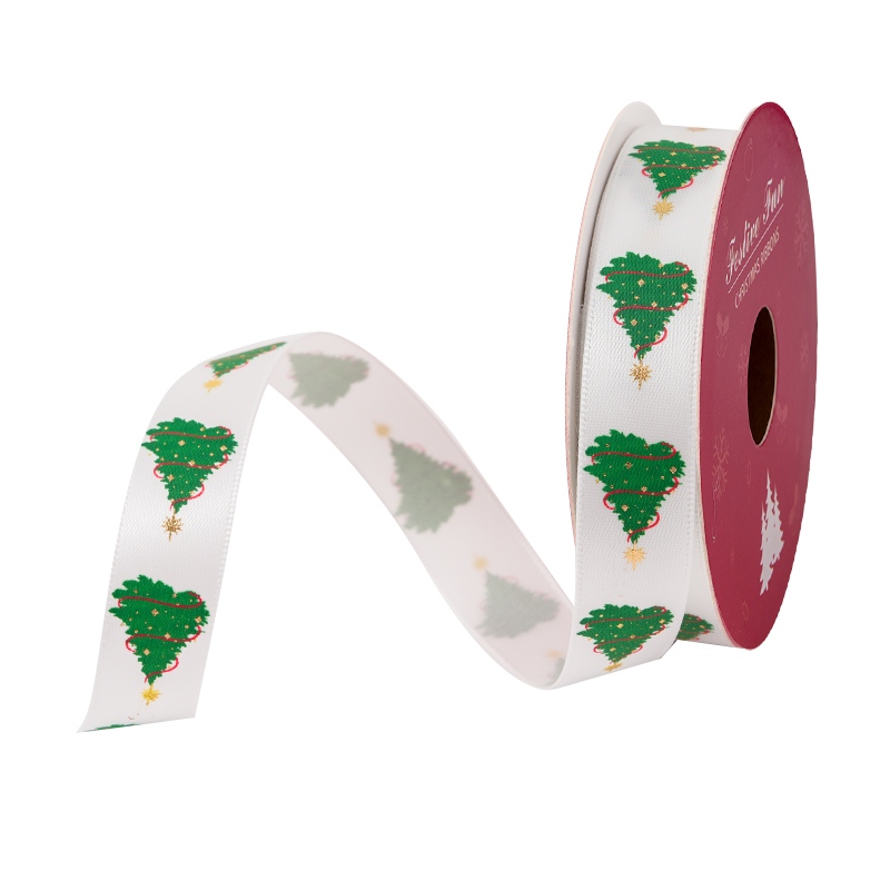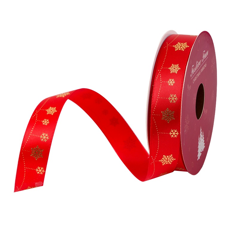 Standard specifications such as 16mm satin ribbon rolls are widely used in retail and supermarket packaging. We also offer custom satin ribbon rolls, including printed Christmas designs, color customization, and private label packing.
