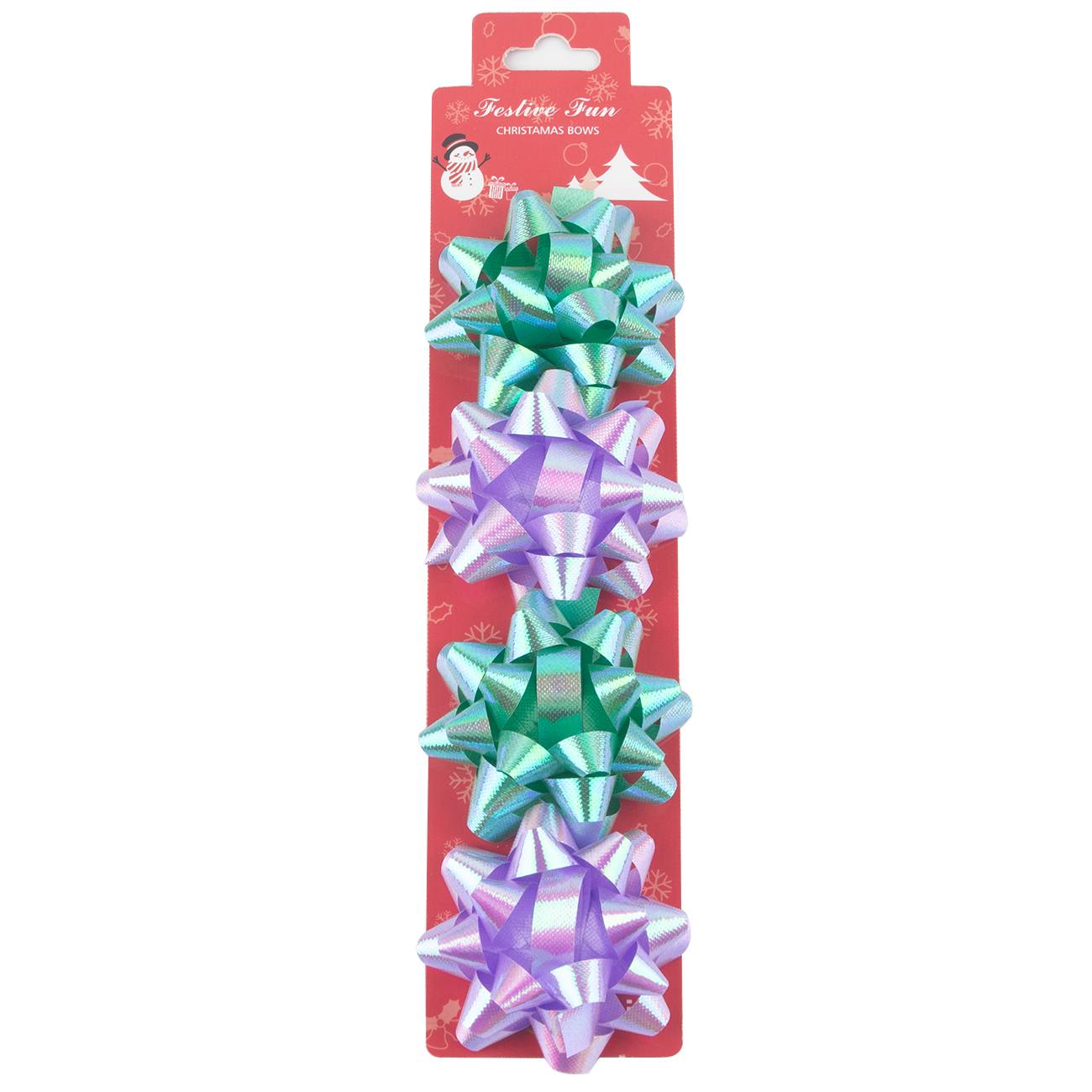 A: Each package contains four iridescent gift ribbon bows.