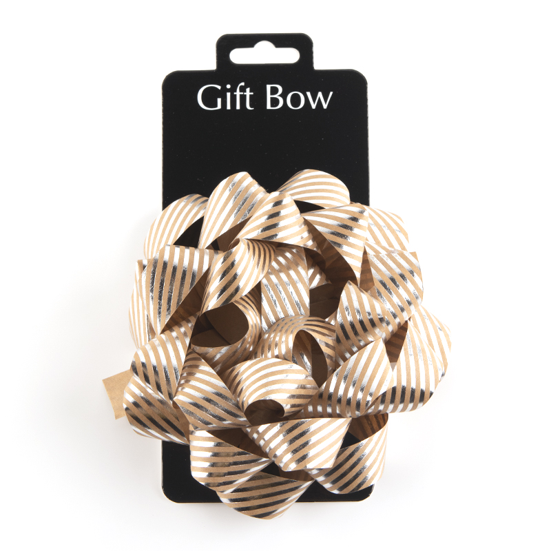 Premium 6-Inch Striped Foil Kraft Paper Gift Bows - Wholesale & Bulk Manufacturer