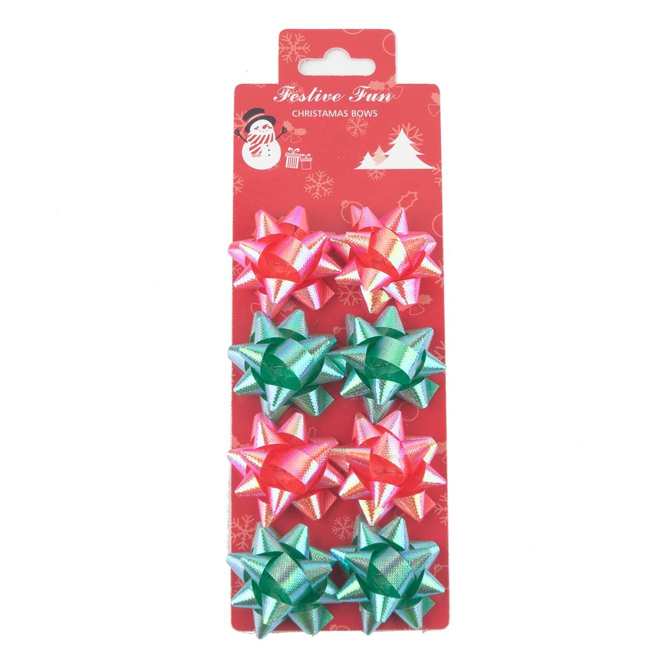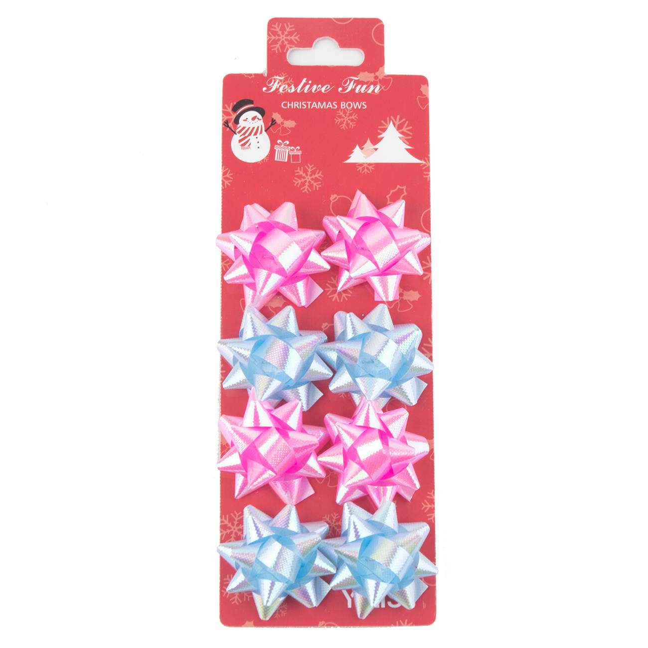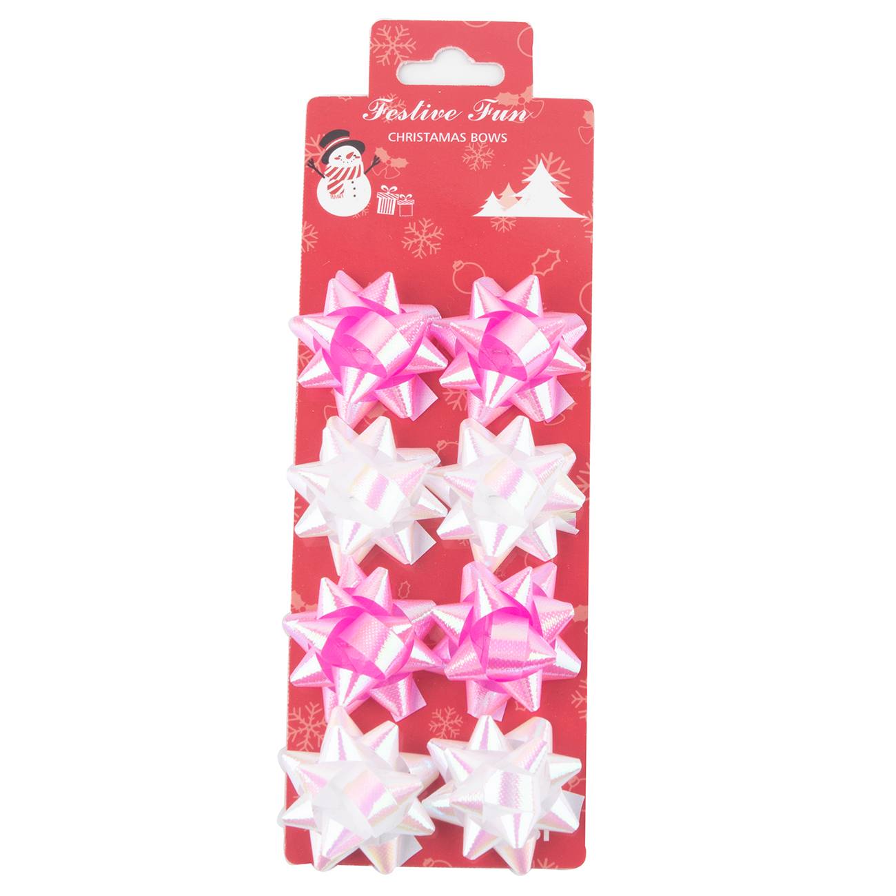 A: Each package contains eight iridescent gift wrap bows.