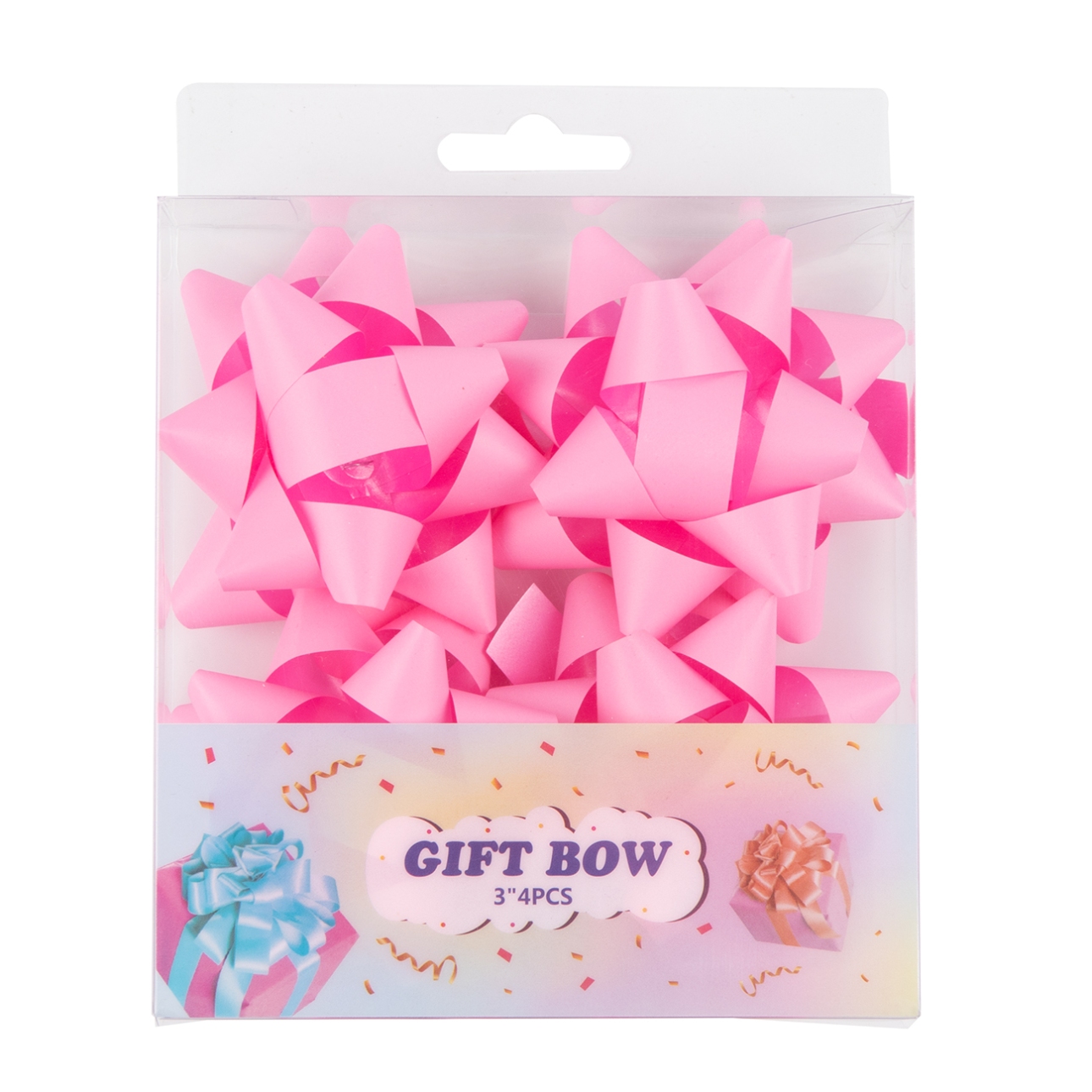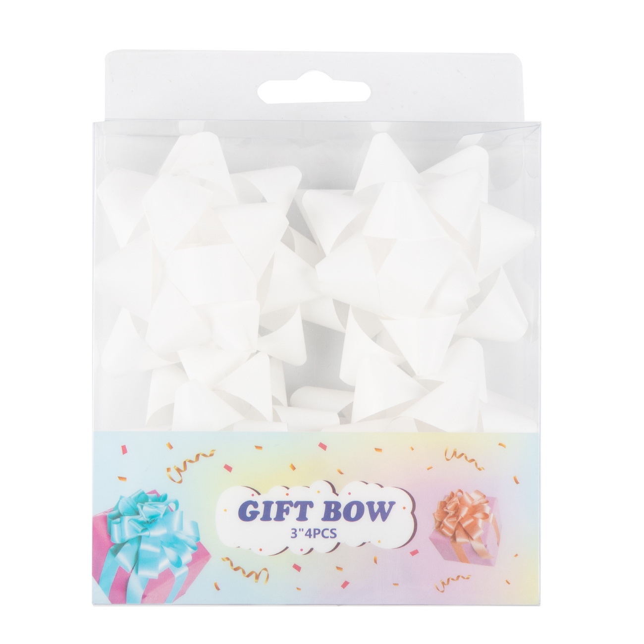 - Retail-Ready Packaging: 4 bows packed in a clear PET box